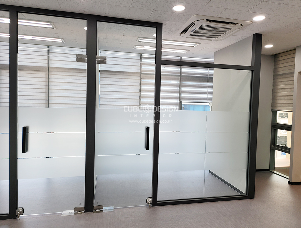 오늘 소개해 드릴 현장은 광교 수원 지방 법원 주변에 위치한 건물에 유리 칸막이 및 인테리어를 진행하였는데요.