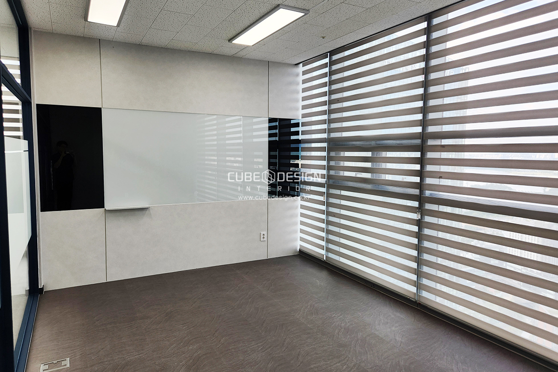 이번 금강IX타워 사무실 인테리어에서는 회의실을 실용적이면서도 세련되게 디자인하였습니다.