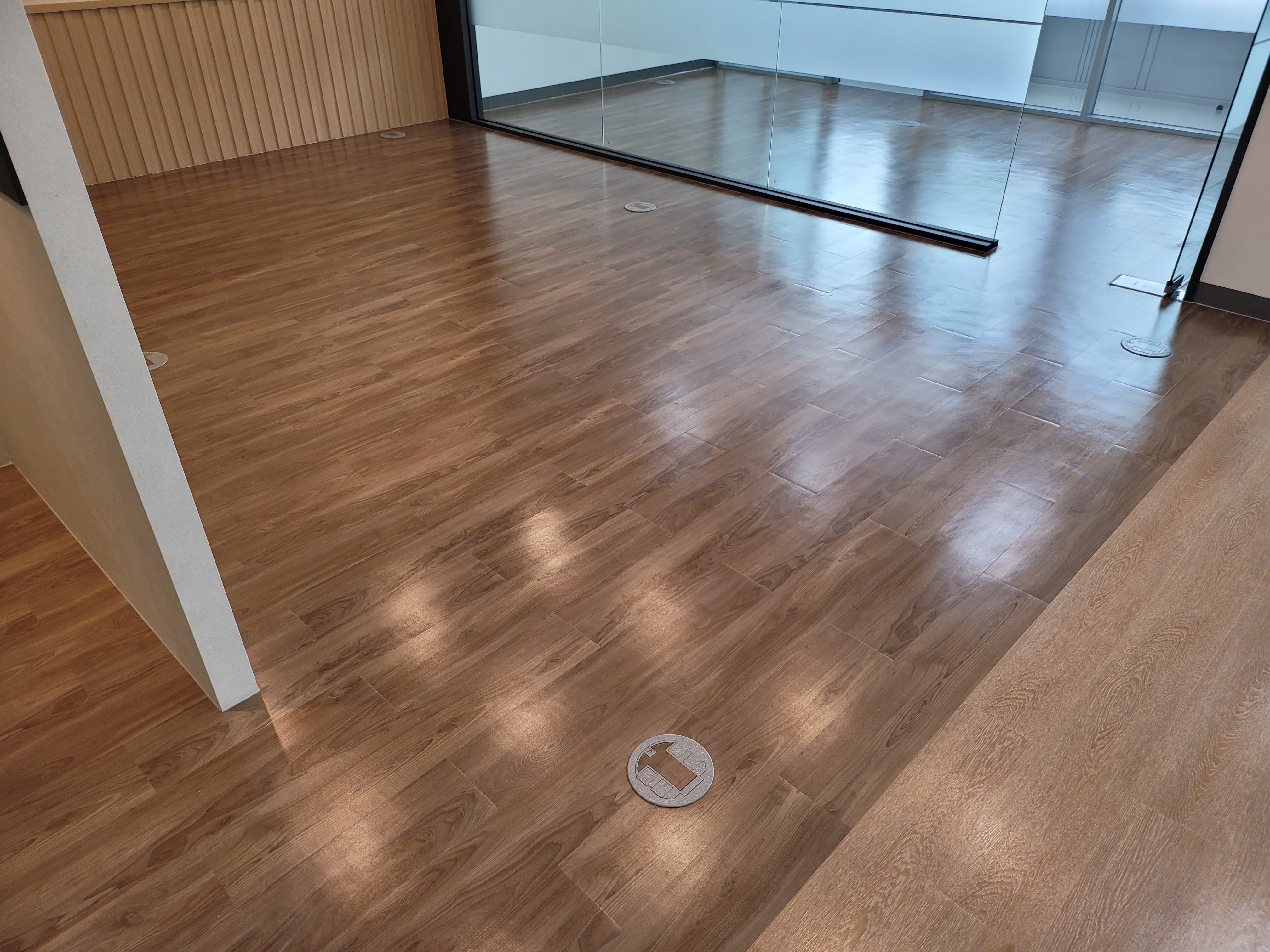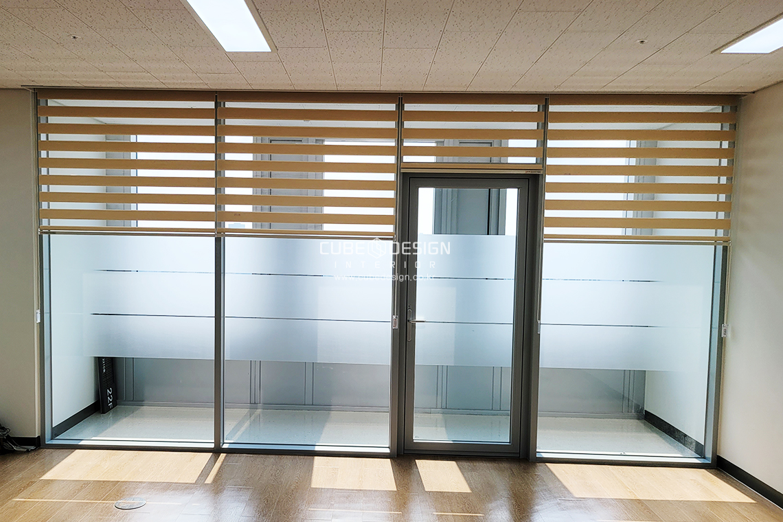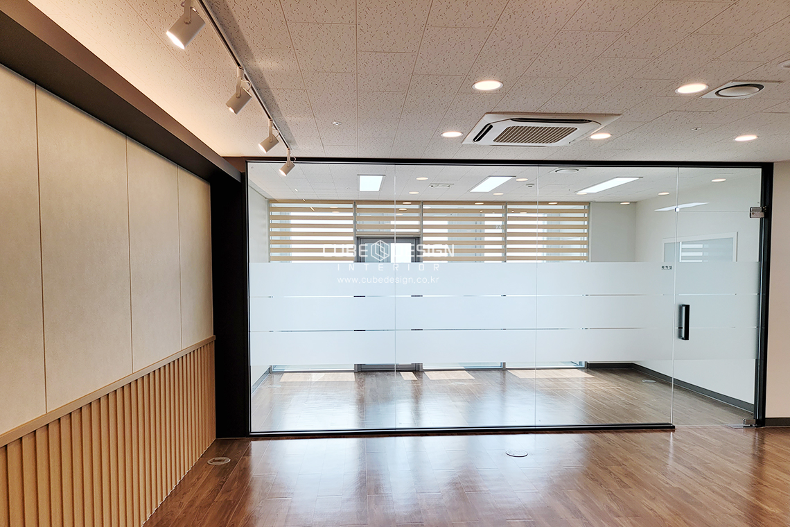 깔끔한 유리칸막이와 포인트월마감으로 고급스러움을 더했으며, 바닥 데코타일 왁싱까지 깔끔하게 마감된 현장입니다.