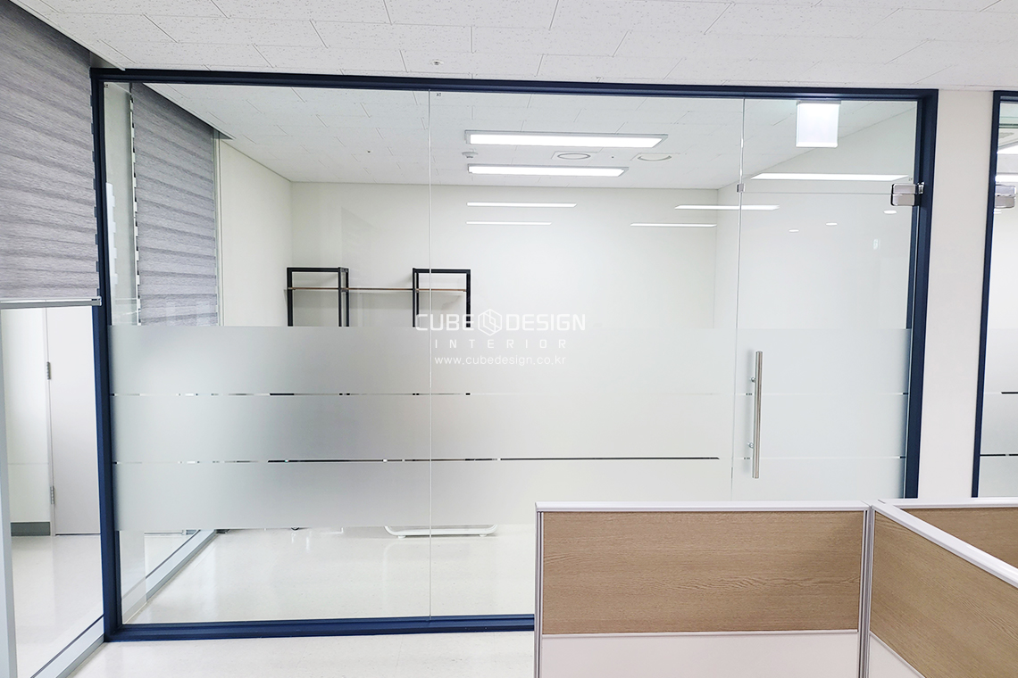유리 칸막이로 깔끔하면서도 외부에 노출되지 않도록 필름 처리되었습니다.