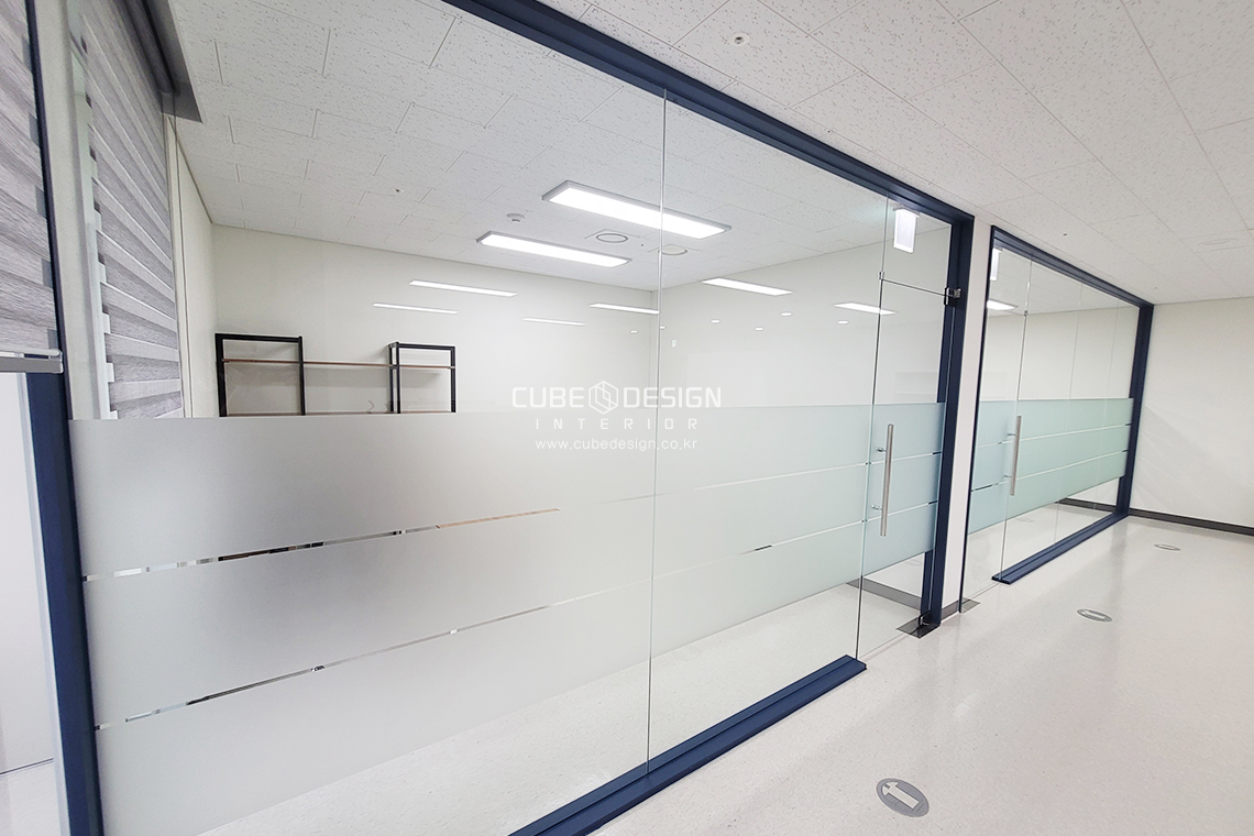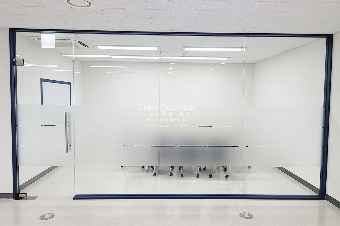 회의실.유리틀과 컬러유리보드 모두 짙은 파랑색 필름으로 완성되었습니다.