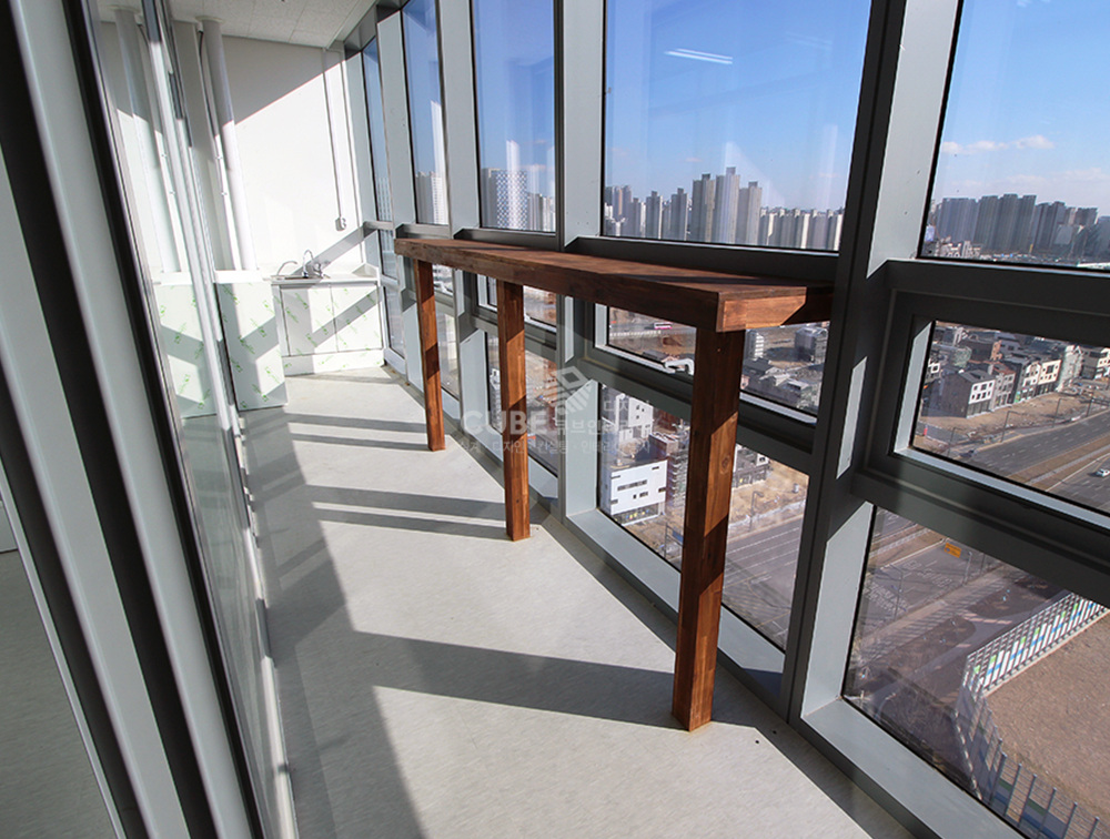 베란다에는 아카시아 합판을 이용해 직원분들의 휴식공간 구성.