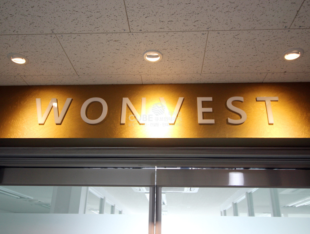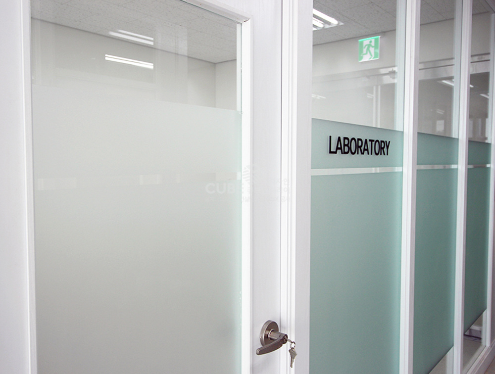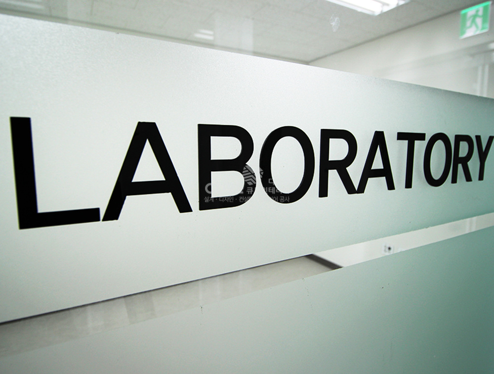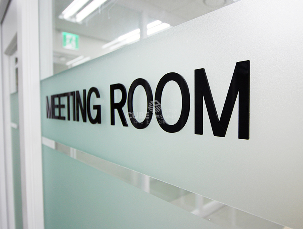 래핑 유리 칸막이 + 안개시트 및 아크릴 문구.