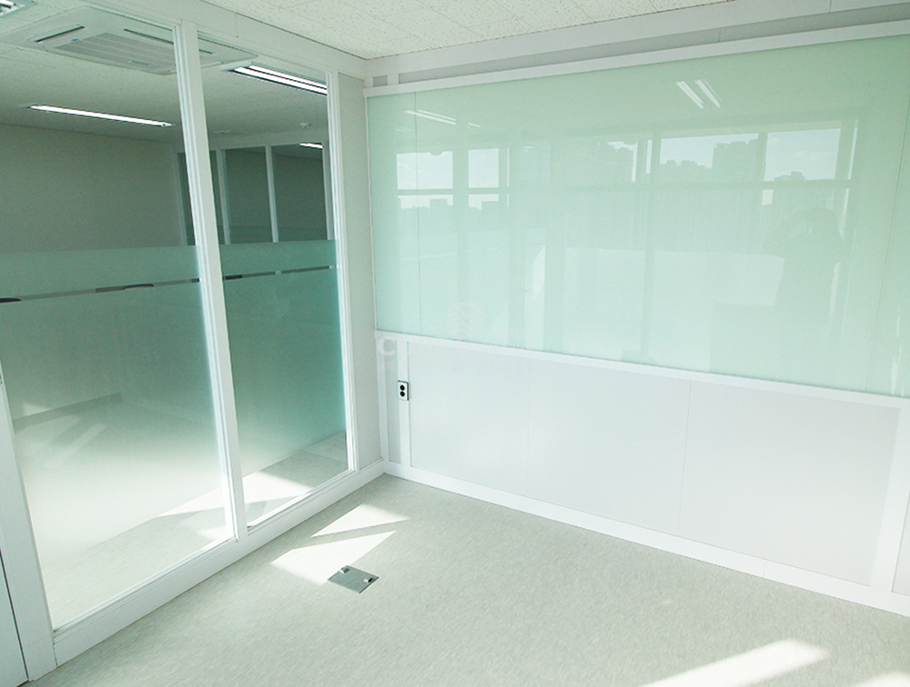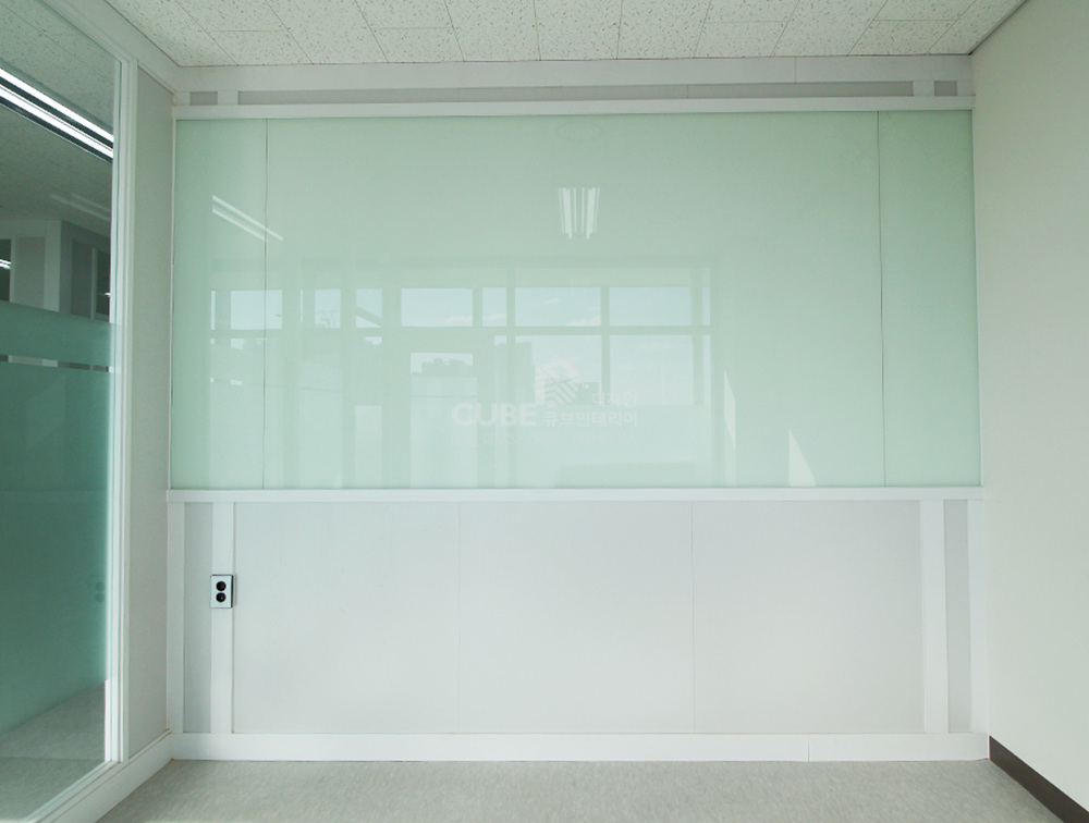 회의실에는 가벽에 컬러유리 화이트보드를 설치했습니다.