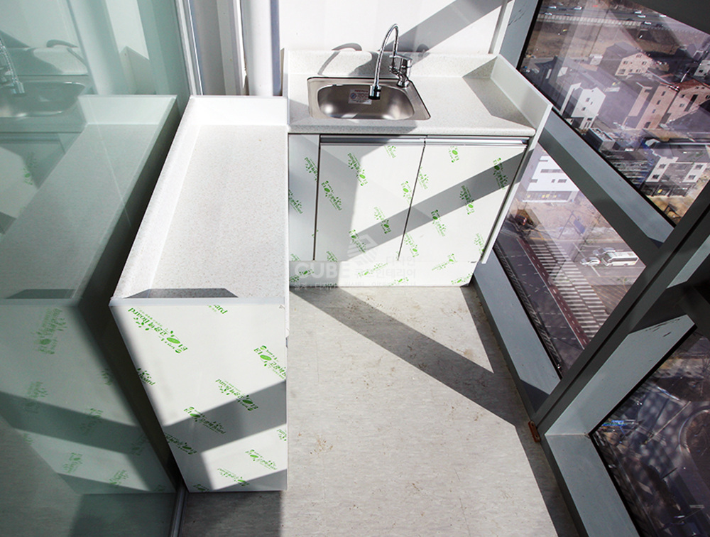 WORK SCOPE    래핑 칸막이 공사1, 유리 칸막이 공사, 이미지월 공사, 싱크대 설치, 목공사 ,강화도어 설치, 설비 공사,                         전기 공사, 필름 공사