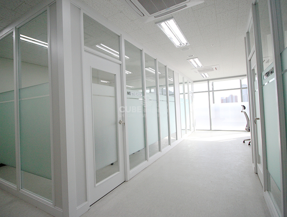 가격 대비 저렴하고 실용적인 화이트 판넬 + 유리 구성으로 깔끔한 사무실을 완성했습니다.