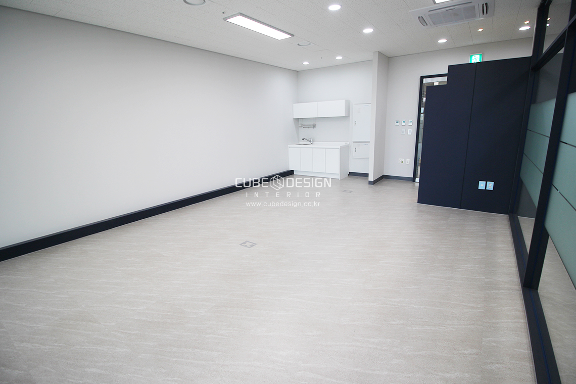 공용 사무공간은 간단하게 적은비용으로 마무리하고 탕비실을 가리지않아 조금더넓고