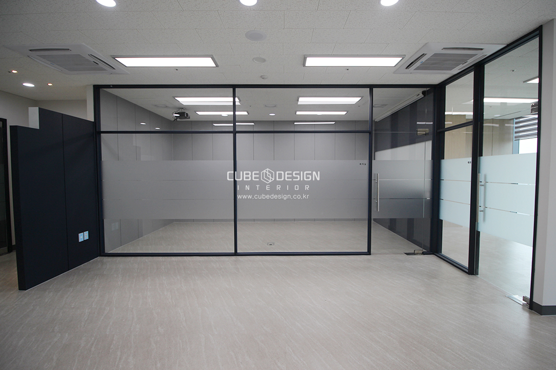 회의실은 유리칸막이를 이용하여 개방감을 주고 답답함을 최소화하여 디자인 하는것이 좋습니다.