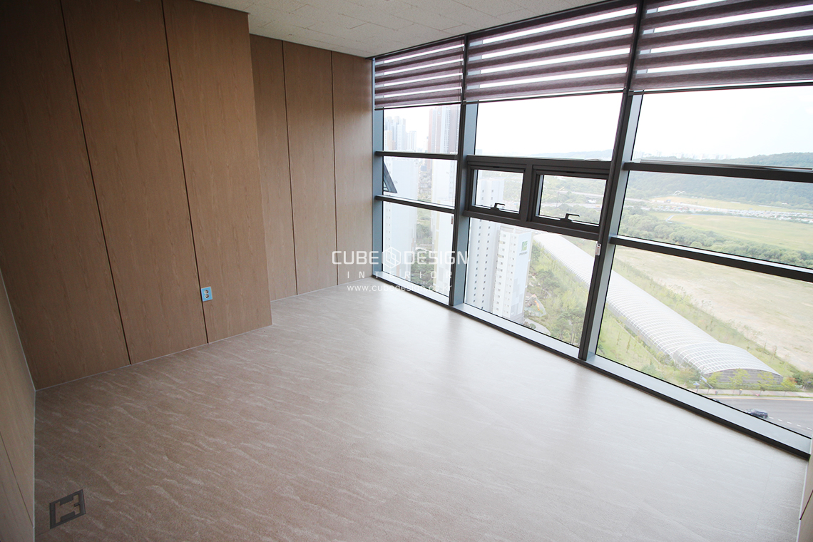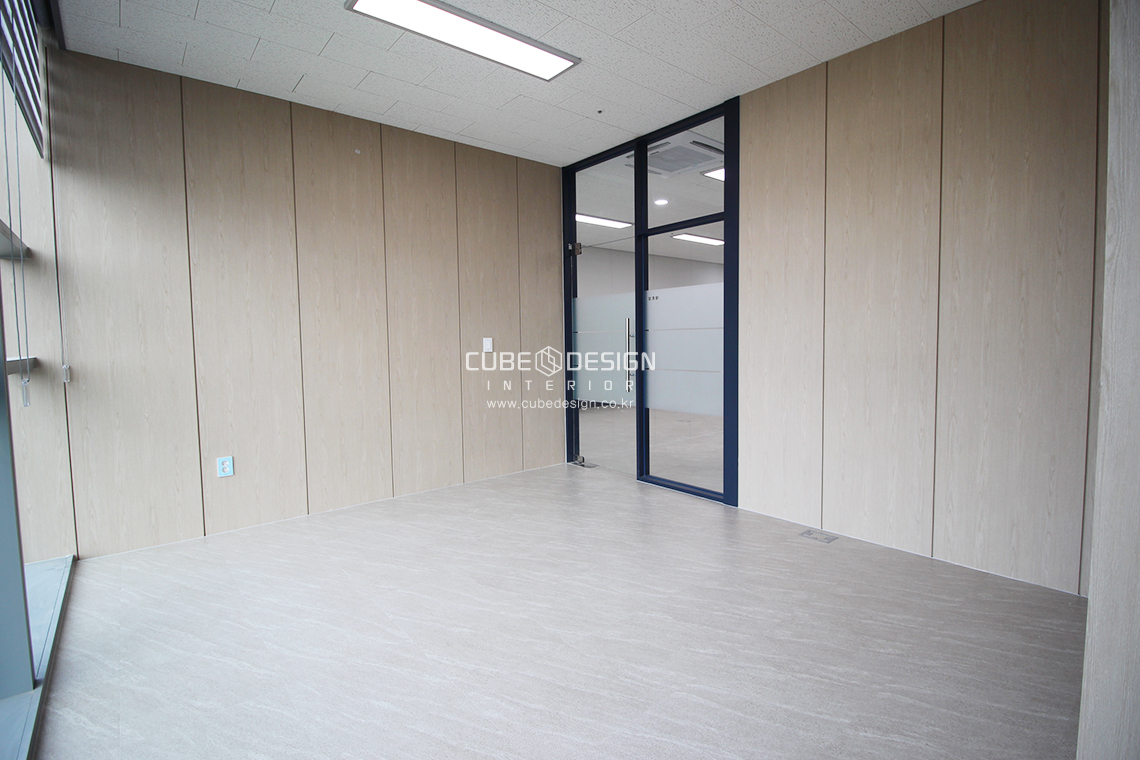 대표실에는 중후한컨셉의가구가 예정되어있어 그에맞는 무늬목을 시공하여 분위기를 잡고