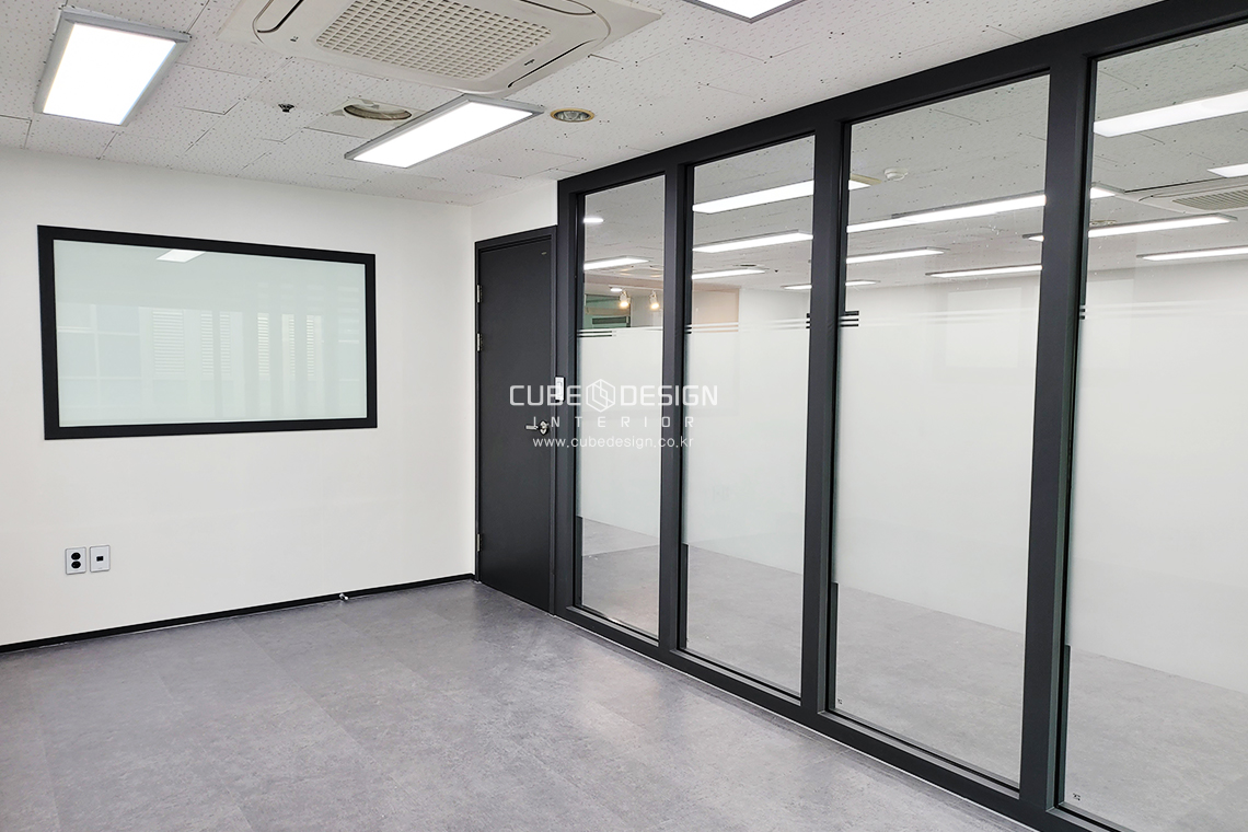 가격 대비 저렴하고 실용적인 화이트 판넬 + 유리 구성으로 깔끔한 사무실을 완성했습니다.