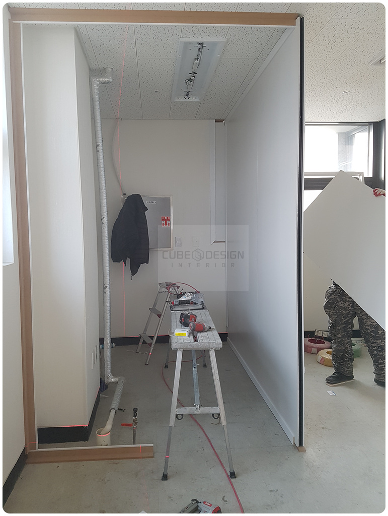 이동식 파티션 가벽(몰딩) 과 탕비공간(도어) 완료