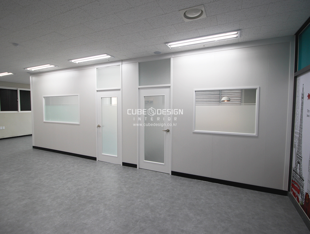 기존에 학원 건물로 쓰였던 공간을 간단하고 저렴한 금액으로 깔끔하게 시공 완료됐습니다.