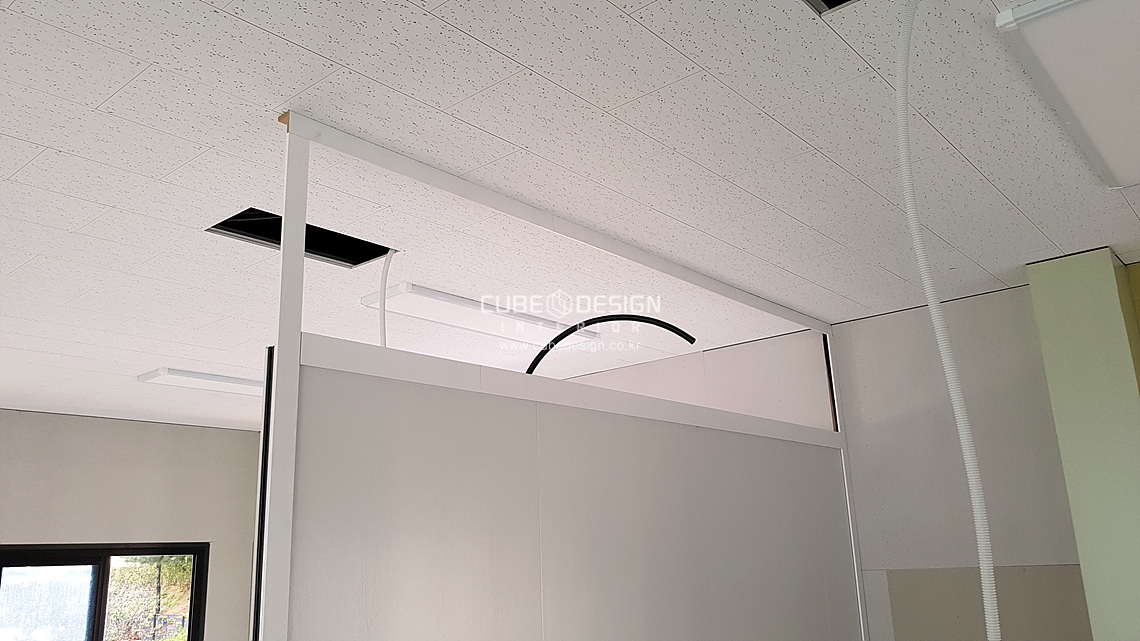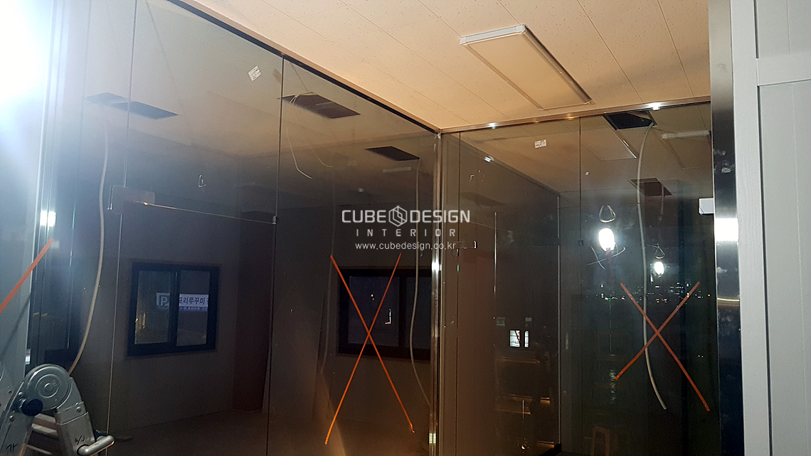 유리칸막이전 가벽에는 래핑칸막이를 2단으로 맞춰 시공되었습니다.