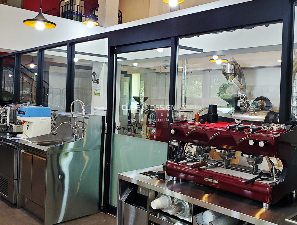 70평 규모이고, 약 1달의 공사 기간을 거쳐 완성된 이곳은 원두 원료를 직접 제조와 판매를 병합하는 카페 매장입니다.
