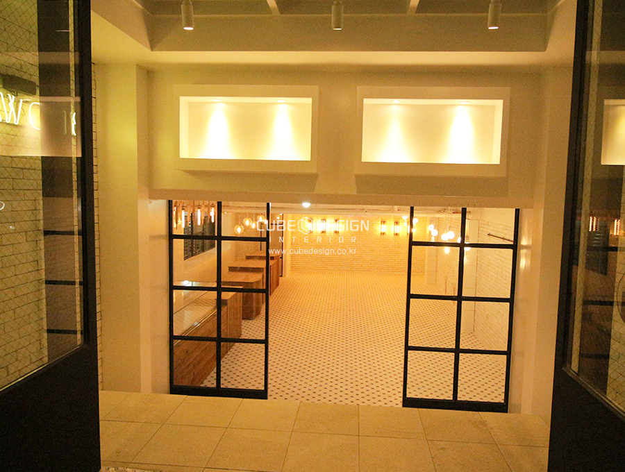 홀에는 화이트 파벽으로 빈티지 효과를 주었습니다.
